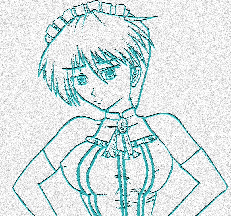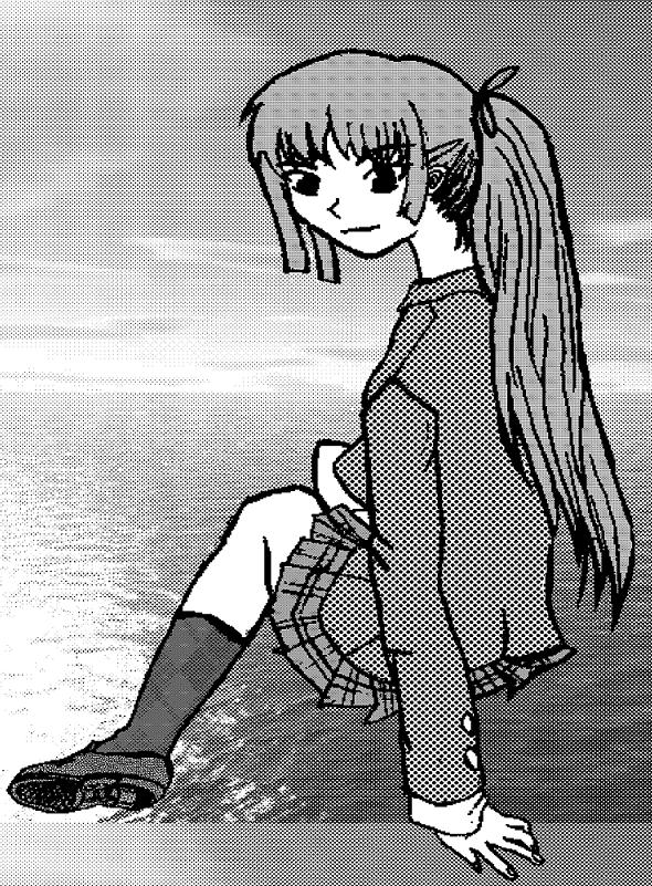 | [2005.5.3] 前の絵にトーンを張ったものですが、初めてコミックスタジオで絵を取り込み、補正した後トーンを張ったもの。 いろいろ試す事ができたし、初めてにしてはよくできたと思う。これからはこの手法もありだと思い。 トーン作業はこちらで当面やっていく予定。 |