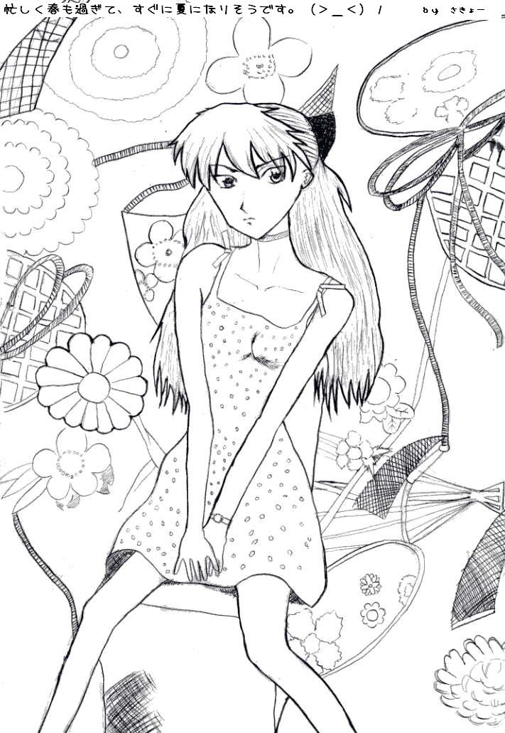 [2005.4.29] これも春休み中に書いていたものを仕上げたもの、どうしてもペン入れは時間がかかりすぎ。 背景でペン入れの基本技術をいろいろ試したがまだまだ、輪郭の取り方がイマイチというのも印象に強い。 水玉模様の服なので、本当は○によって輪郭の立体感の表現を出すのがいいのだが、 高等な技術過ぎて無理。 なんとなくこちらに上げておくw |
