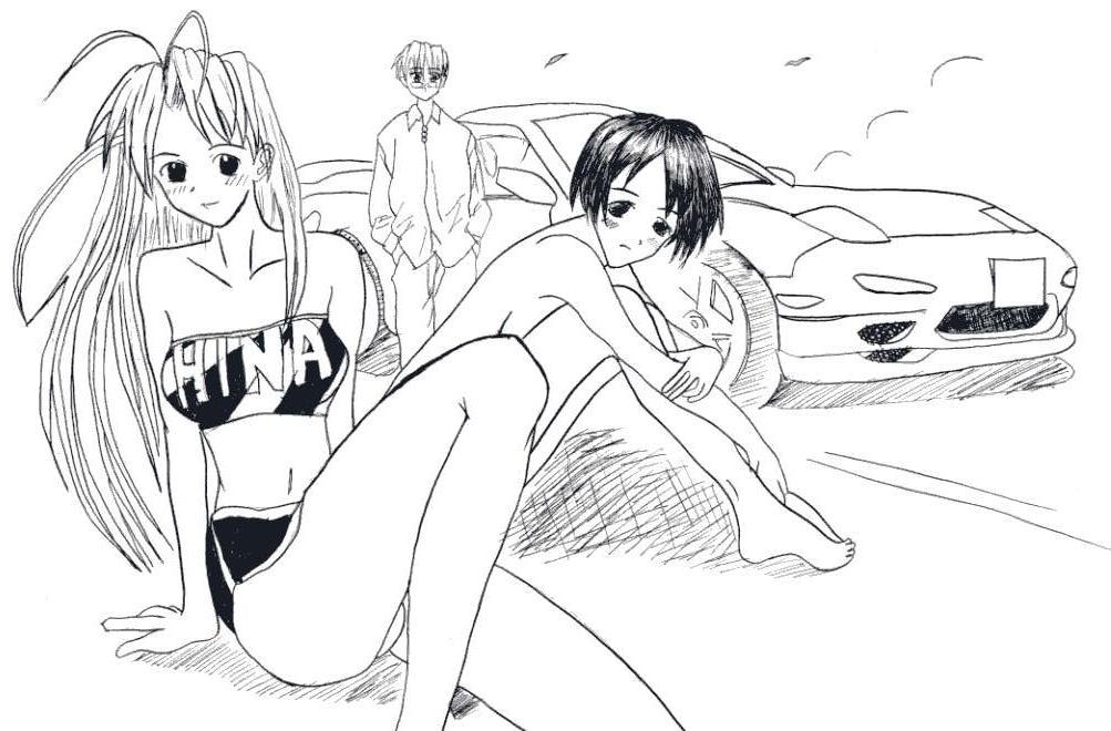 | [2005.6.18] 下書き後ペン入れまで下段階ではこんな感じだったがそれから数々の補正とトーン、噴出しなどを入れていると とんでもない作業時間と苦労の先にトップ絵がある事を思う。 これだけでもかなり時間はかかったが…。女性らしい足書けていない。ペン入れ後に補正した線が残っているが。 とりあえず、疲れたOTZ. |